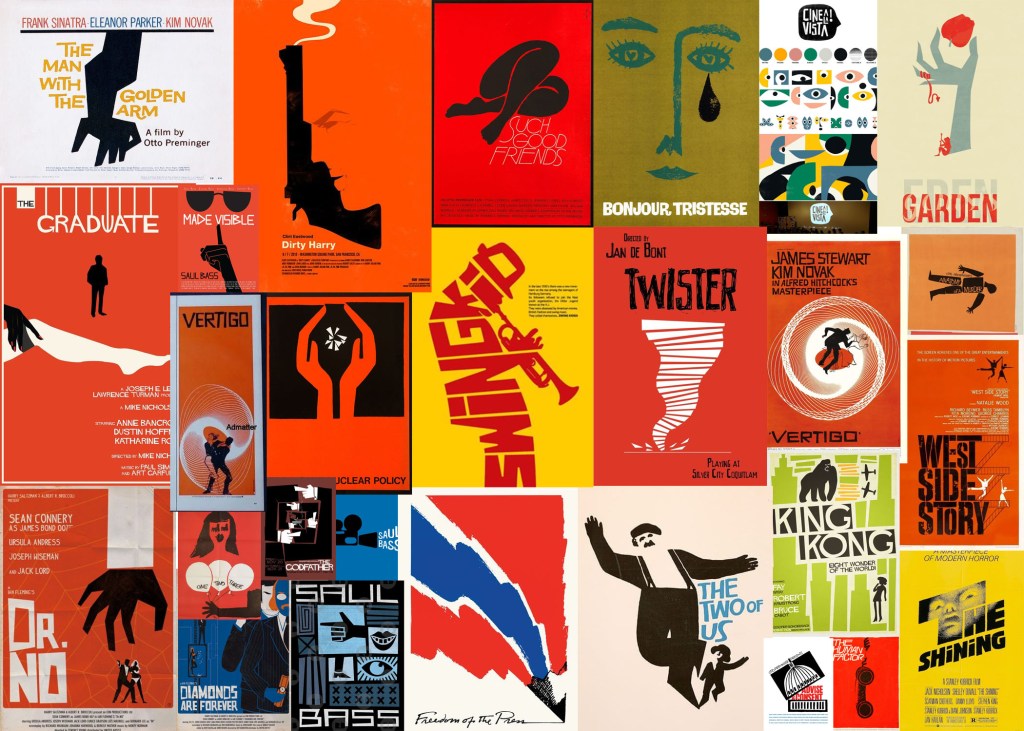 I have created the collage of Saul Bass – world famous movie poster designer. His style contain metaphorical view at the movie and use of strong colours (often red). I have mixed yellow posters with red, as it creates interesting look. There is a lot of red in my collage, as this is my favourite colour and I think it really shows the nature of Saul Bass work. I have included some brighter posters on the edges, to keep the colour – balance.